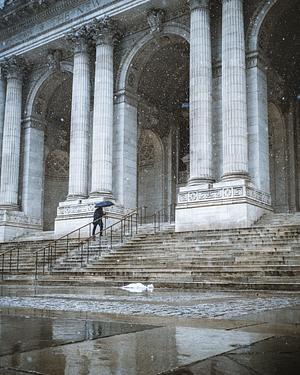 New York Public Library steps, February 2022. Taken during a work break walk on the Fuji X100V. Image will look brighter on your screen, and more saturated/detailed once printed.