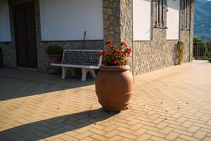 An elegant patio in Agerola, Italy. Taken summer 2022. Just one of many such patios in Italy. Shot on a Fuji X100V Image will appear brighter on screens intentionally so that the print will have the proper exposure and saturation.